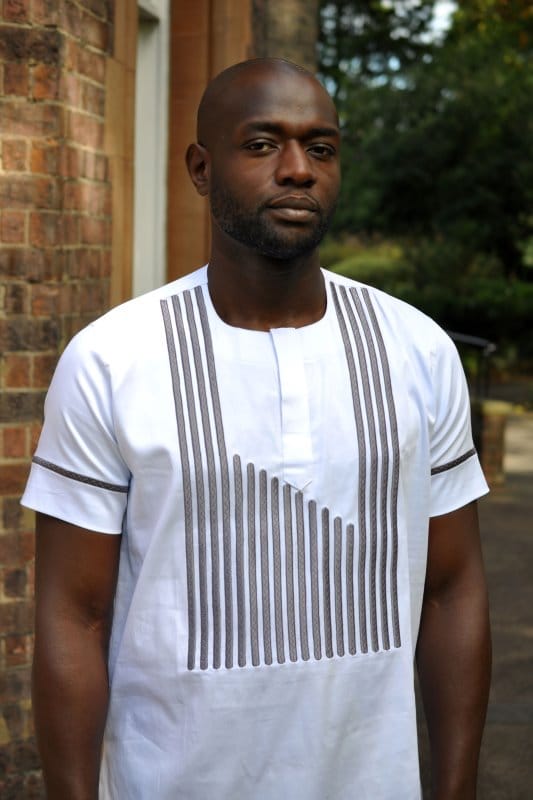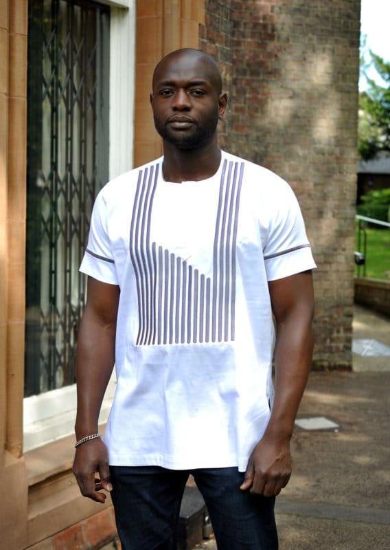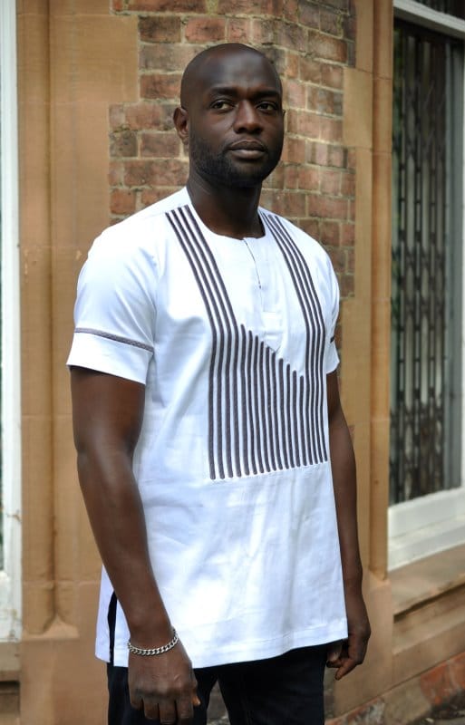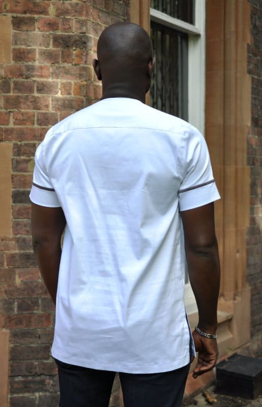 This white & grey African embroidery shirt is perfect for special occasions such as weddings or proms etc. The embroidery and the eye-catching design in suiting material really finishes the look.