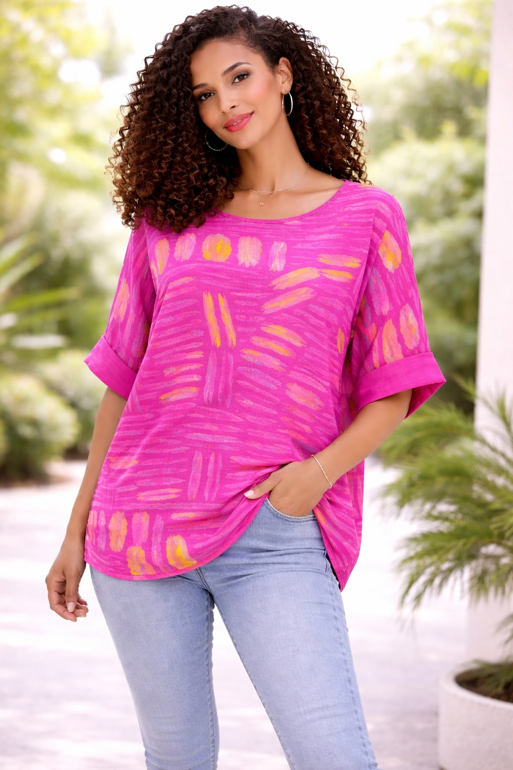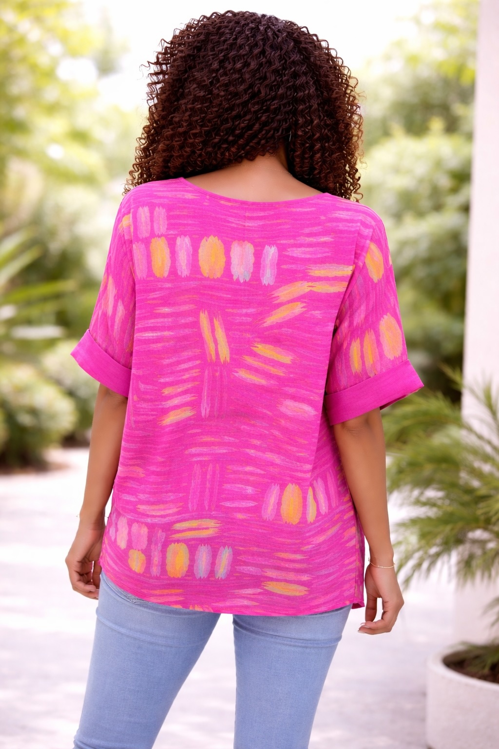 Fashion feels even better when it is easy, flattering, and comfortable, and this top delivers exactly that. The artistic abstract print, breathable cotton fabric, and relaxed fit create a look that is wearable, modern, and effortlessly stylish.