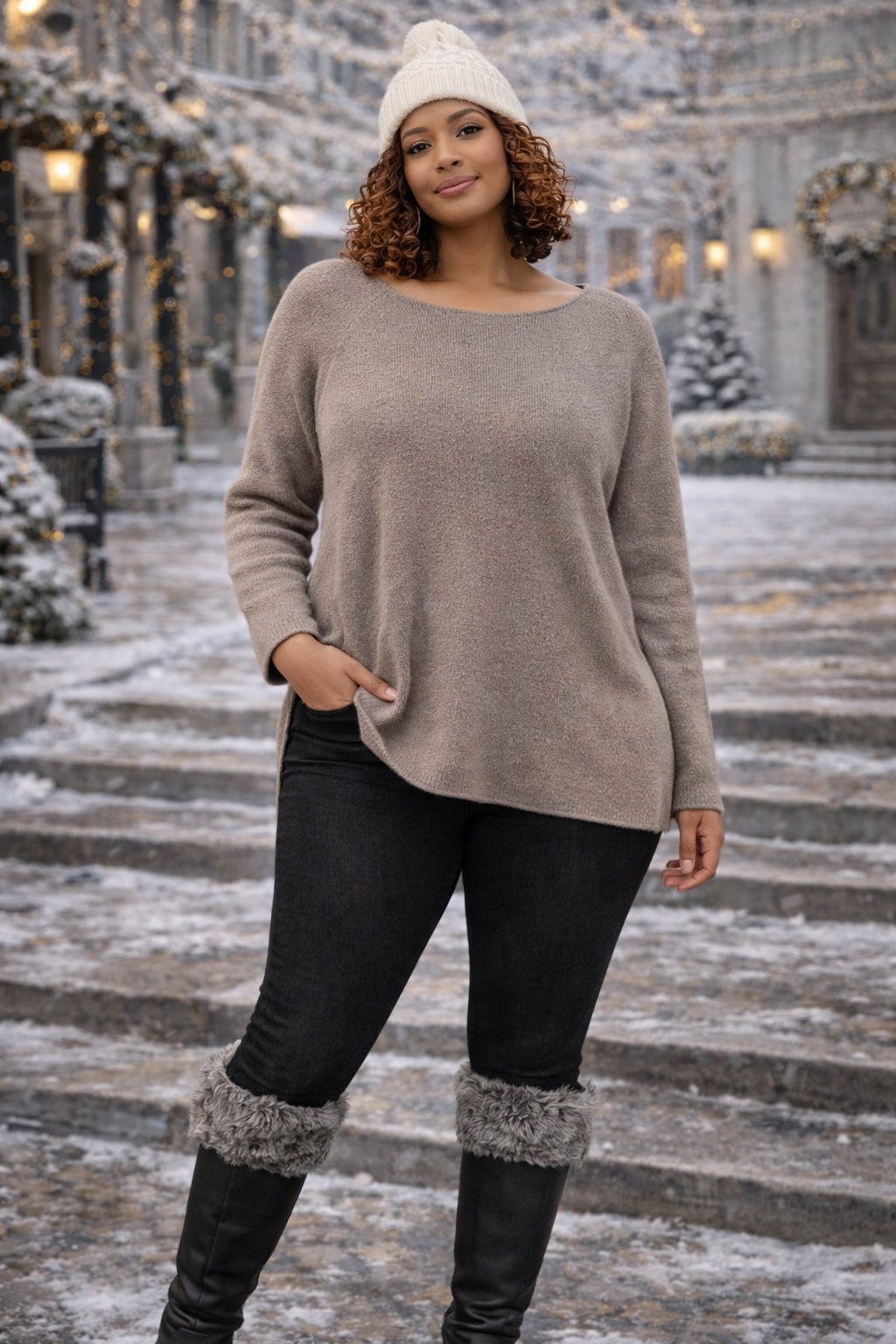 The softly curved scoop neckline creates a flattering, feminine silhouette that gently frames the neckline and collarbone. This elegant detail adds visual interest while maintaining comfort and ease of wear, giving the top a refined finish that works effortlessly for casual, smart-casual, and layered winter outfits.
