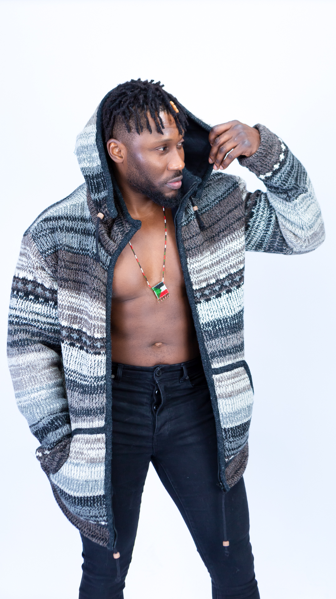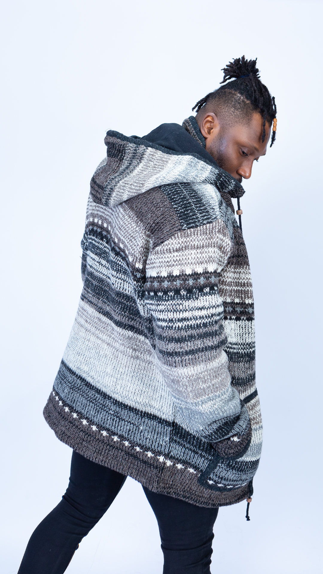 Woolen Hoodie Jumper in Grey Hues Quality Handmade