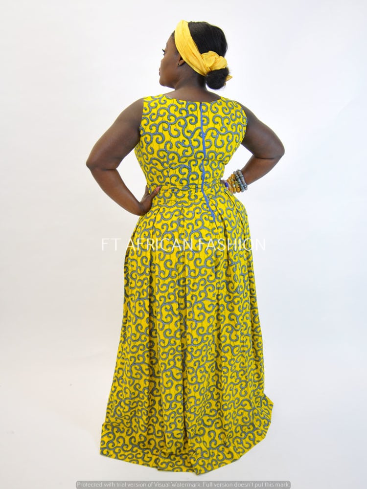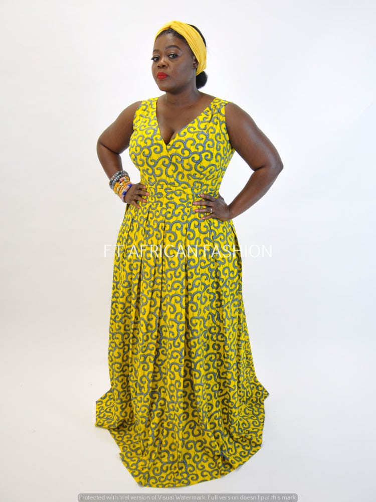 Our Yellow Ankara Print Maxi Dress is custom made so please include your measurements when you order! Please use our size guide & measurement guide for best fit.
