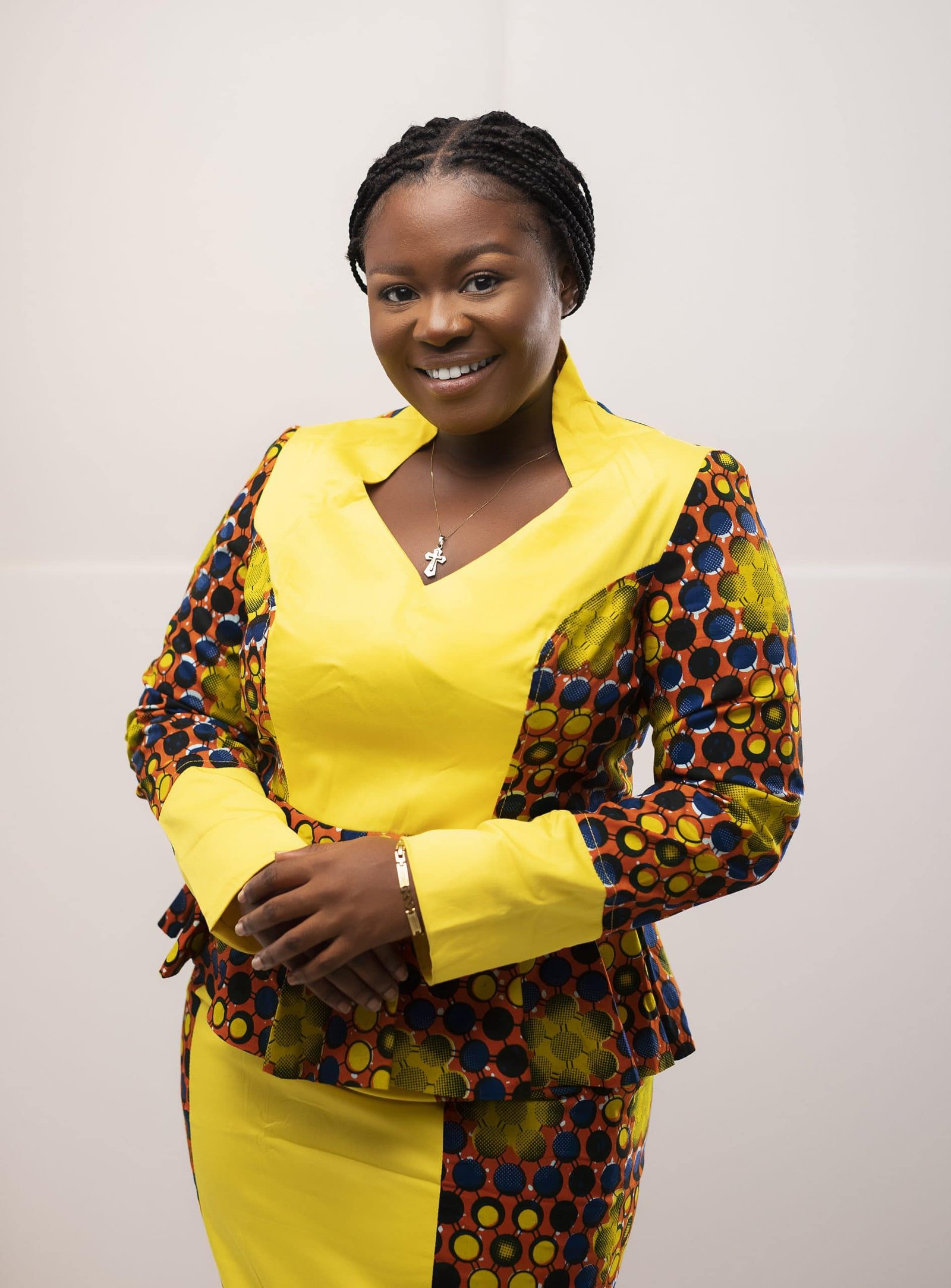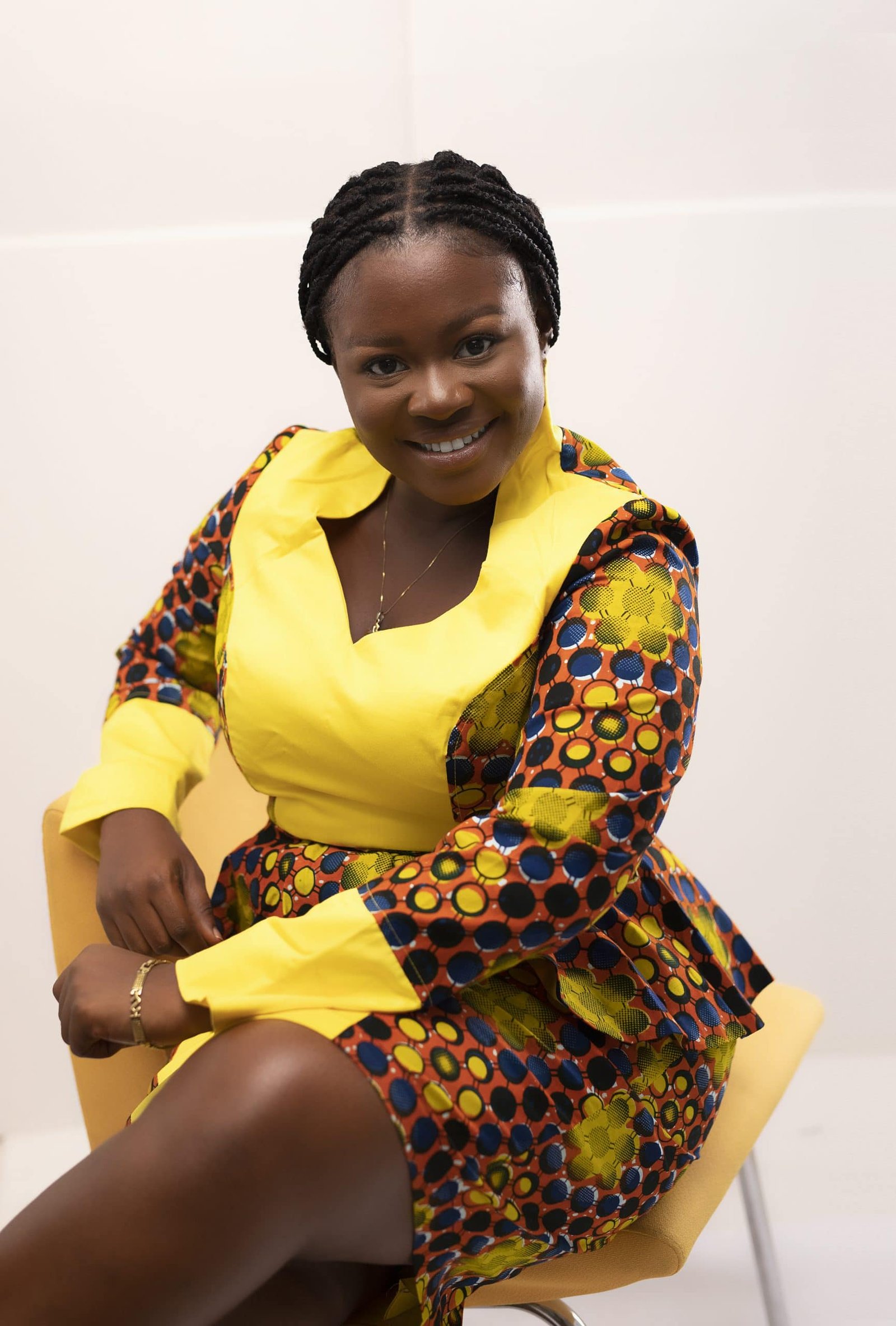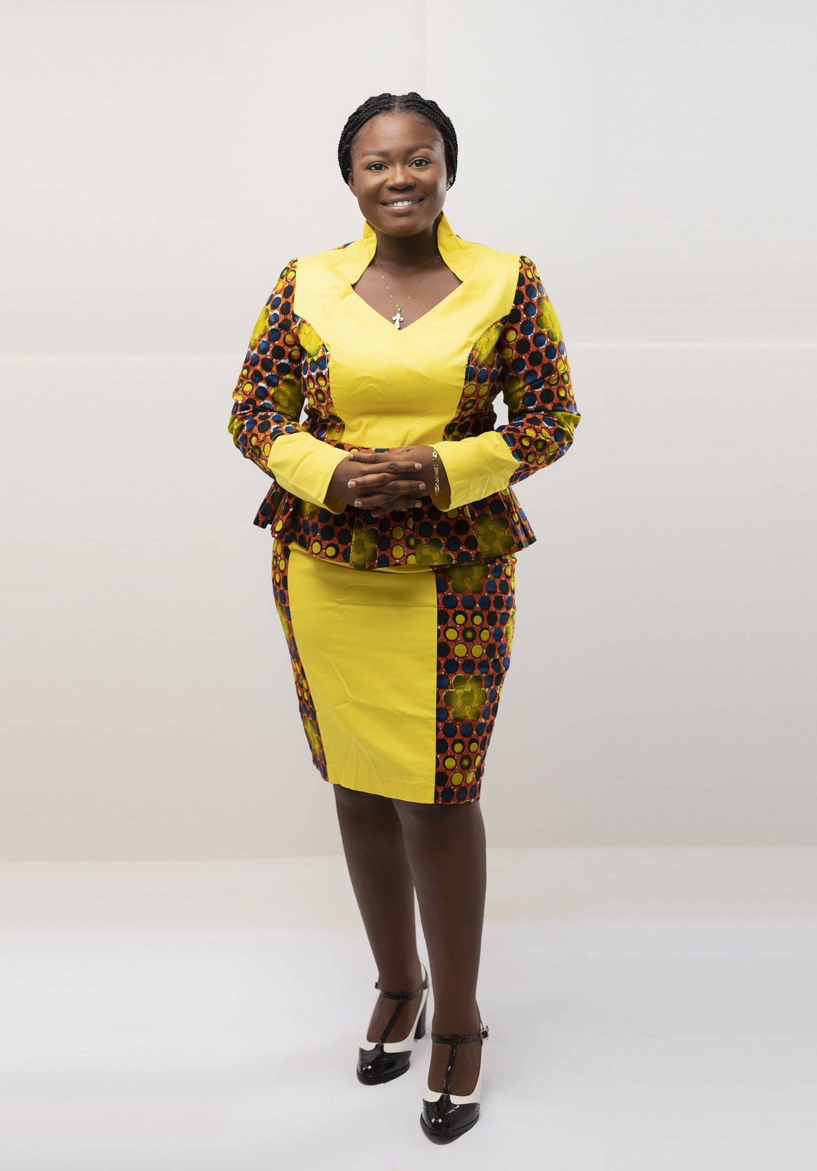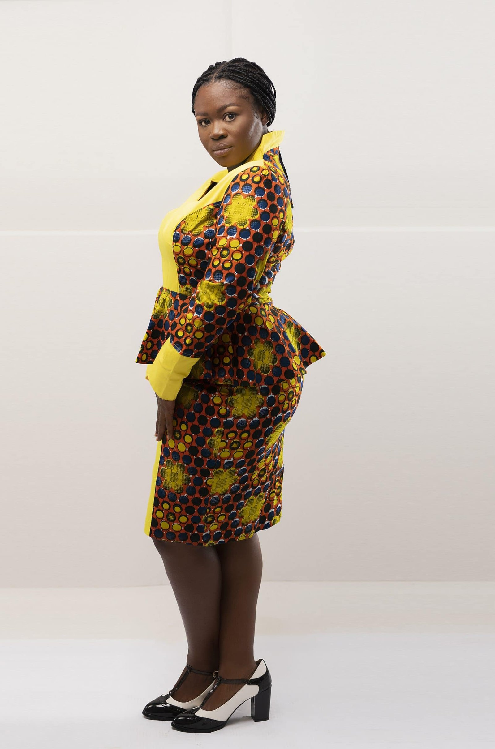 - Pattern Type: Contrasting design / solid yellow panel, collar and cuffs & African print pattern