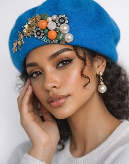 Handmade Reworked Beaded Wool Beret